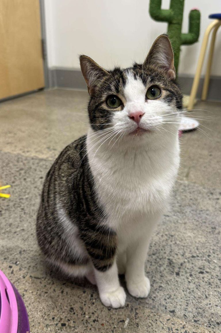Casper is a handsome grey and white gentleman who has returned to Furry Tales care and is ready to find the perfect, specific kingdom to call his own. While his previous adoption didn’t work out, Casper hasn’t let that dampen his spirits. Since arriving at his foster home, he has settled in beautifully—he is already playing non-stop and actively asking for all the cuddles he can get!