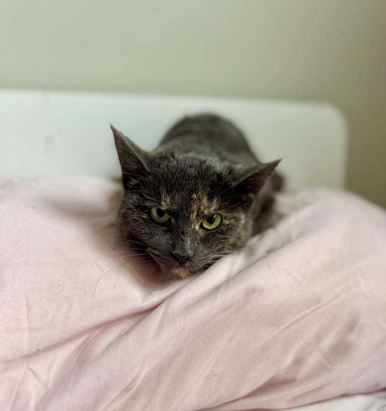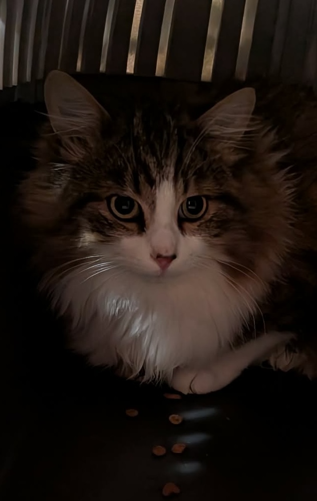 She is not fond of loud noises or sudden movements, so she would likely thrive in a calm, quiet home, ideally without young children. Carrie has excellent litter habits and eats well, enjoying both wet and dry food. Salmon is her favourite, and she’s also quite fond of Temptations.