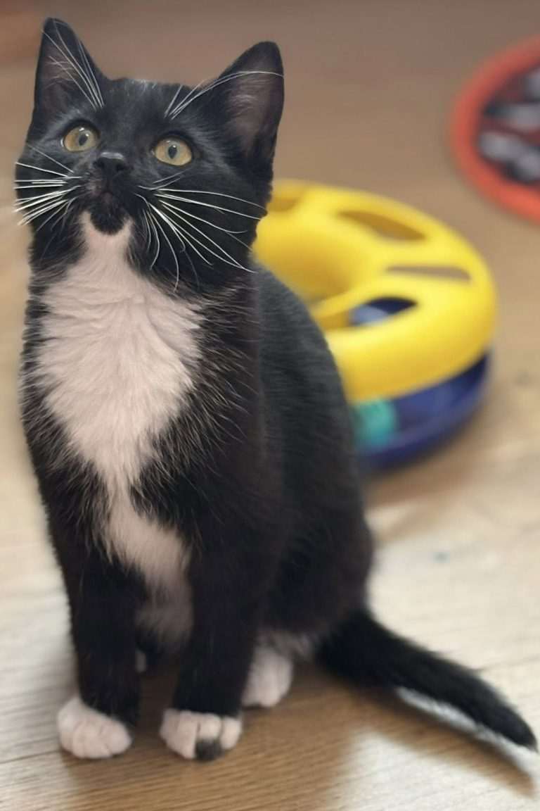 Don’t let that permanently innocent look fool you; Chase is a bright boy who often finds himself in the middle of the fun! He is the resident “cardboard demolition king 📦👑” and can make a game out of any box, feather wand, or bag of Temptations. When he isn’t busy with his demolition projects, he’s a kind and gentle soul who loves to curl up on a high perch or cat tree with his sister. Chase is a “velcro cat” in the making and is just waiting for a forever family to provide him with the laps, kisses, and cardboard he deserves.