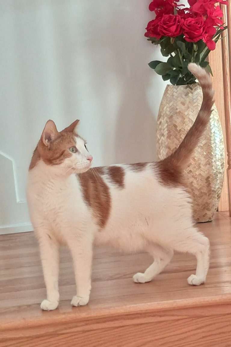 Briar Rose is a stunning white and orange tabby who has settled into foster care with ease. She is a delightfully vocal girl who fills the day with a variety of sweet chirps and chatters, making sure you always know she’s nearby. A true “people person,” Briar Rose is never far from the action and loves to see exactly what you’re eating or what project you’re working on. While she is a laid-back soul who enjoys sprawling out on the floor or lounging on the couch beside you, she also has a protective side—she’s been known to let out a funny, dog-like growl at people passing by the window to let them know she’s on duty!