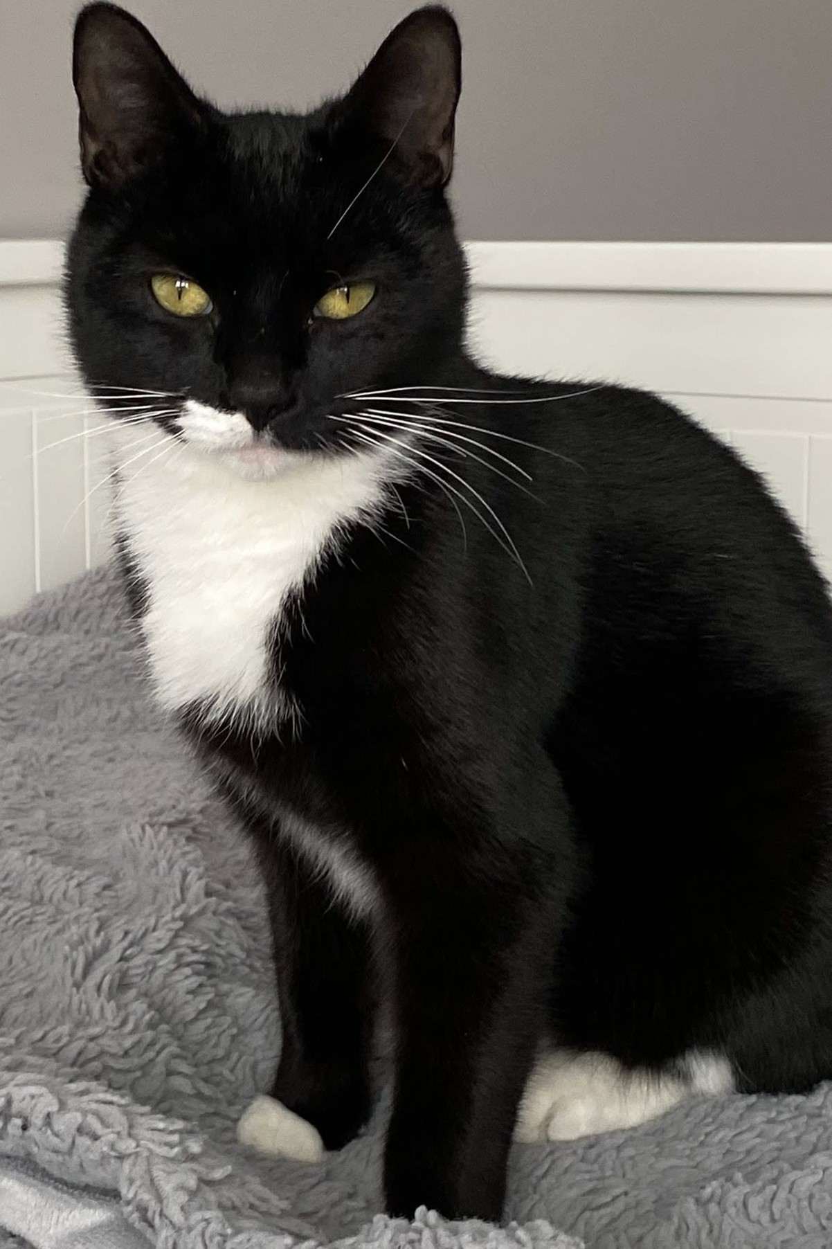 Hathor is a stunning tuxedo like her mother, with the same expressive white whislers and the cutest white smudge on her face. Out of her family trio, Hathor is the most affectionate and lives to be the center of your world. She is a dedicated lap cat who doesn’t just sit with you—she snuggles in deep, often hiding her face against your body for maximum comfort and security. She is so fond of human attention that she’ll even try to nudge her way in if she sees you petting anyone else in the room. If you’re looking for a loyal, sweet companion who will shower you with love, Hathor is the one for you.