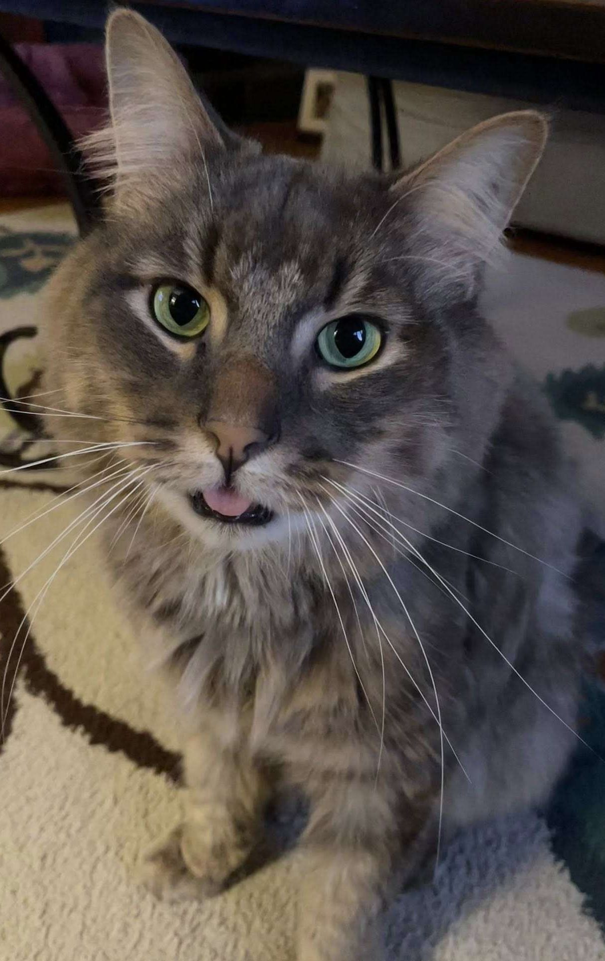 Milkshake is a gentle and affectionate grey tabby with the softest fur (and heart). Though shy at first, he’s quickly learning that humans mean comfort and love. He absolutely adores head and chin rubs and has the sweetest habit of resting his forehead gently against you as if to say thank you: a gesture that melts hearts instantly!
