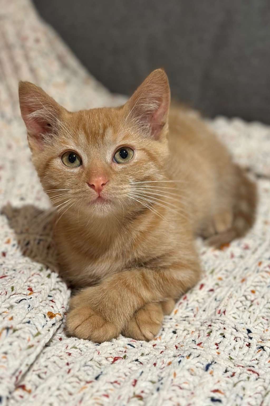 Summit is a perfect fit for his name—he’s the ultimate climber and is always king of the hill! He was the first to scale the gate and happily taught his siblings how to do it, too. This active boy knows how to be sweet and gentle with his sister but is also quick to initiate a fun wrestling match with his brothers. While he isn’t a lap cat (yet!), he loves to be petted and prefers to snuggle up beside his brothers, Alder or Lark, instead of sleeping alone.