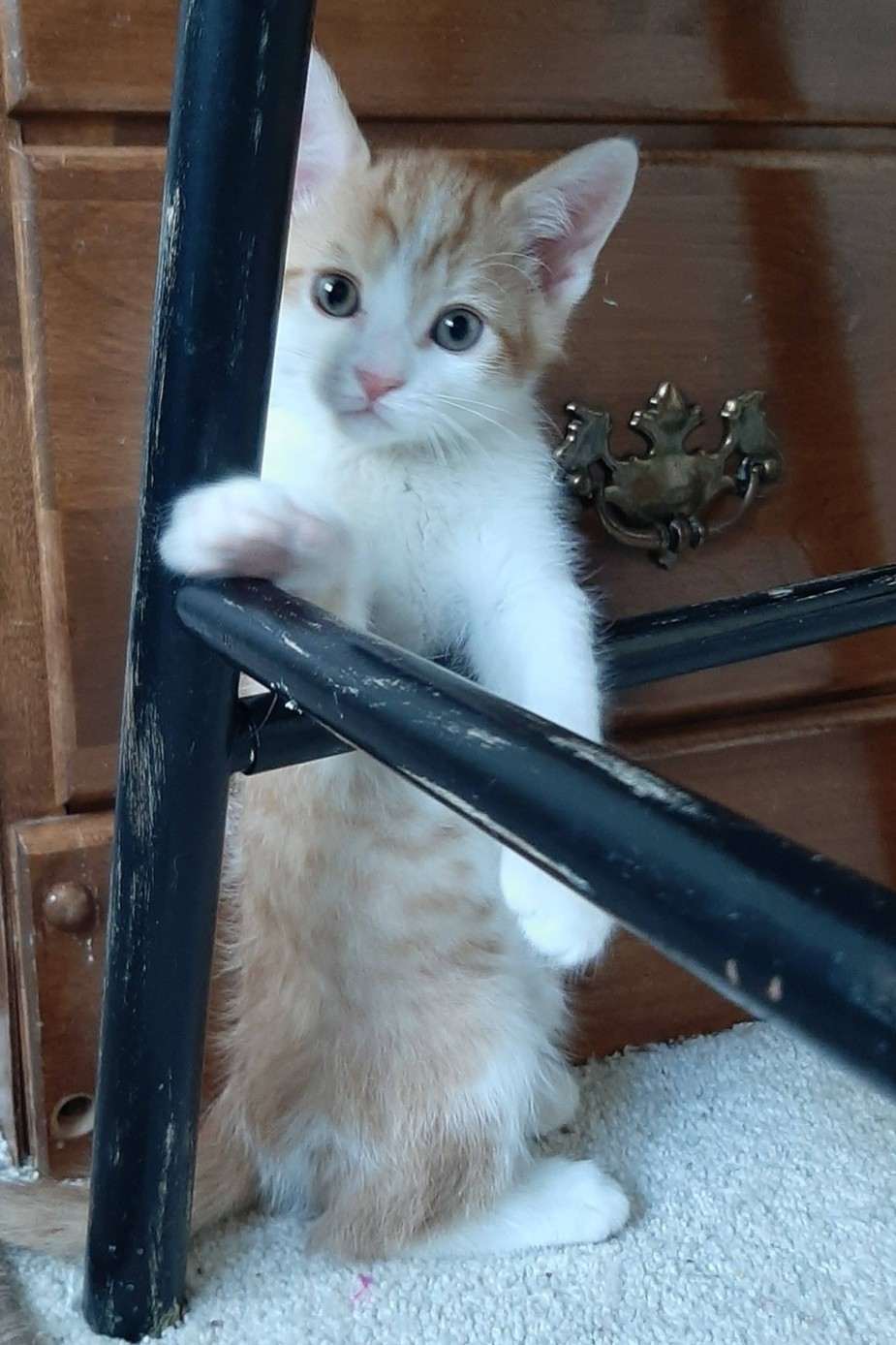 Sundance is a friendly orange and white tabby who has perfected the art of the “hit-and-run” cuddle. He is a total sweetheart who purrs on demand: his motor goes from 0 to “PURR” the moment you pick him up. He loves being held and will happily soak up affection… but only long enough for a pit stop! Once his “cuddle tank” is full, he’s off like a shot to start a wrestling match with one of his siblings.