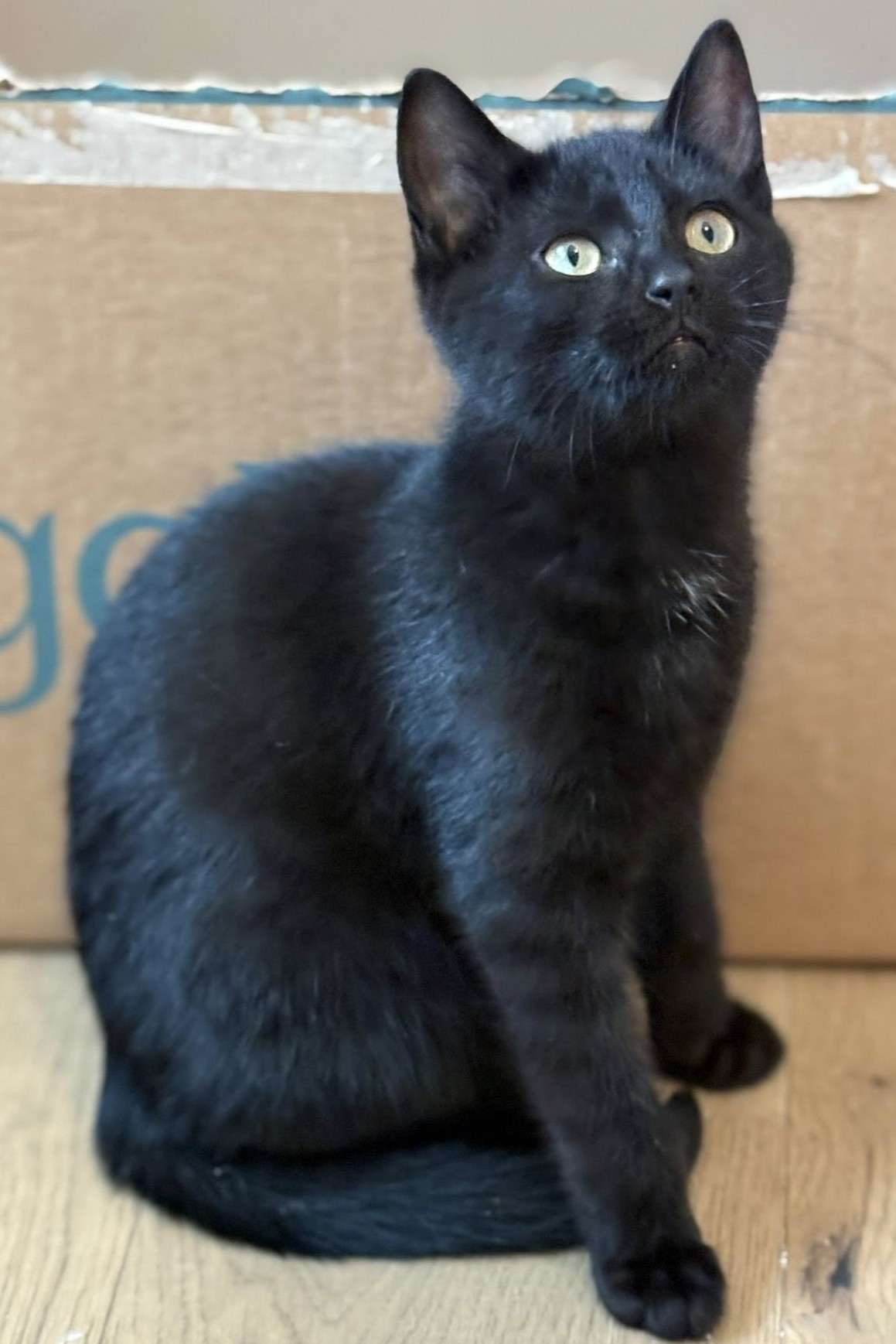 Suzzy, (also known as Suzzy Q or Suzzy Q Beans!) is a stunning black kitten who is the definition of “borderline royalty.” Named after a dedicated foster volunteer, she lives up to her name with a personality that is soft, gentle, and incredibly refined. With her sleek coat, delicate face, and perfect button nose, she is an absolute stunner who carries herself with a dainty, princess-like grace. Suzzy is a deeply affectionate family girl who spends much of her time snuggled up with her momma, Dawn, or busy grooming her siblings to make sure everyone looks their best.