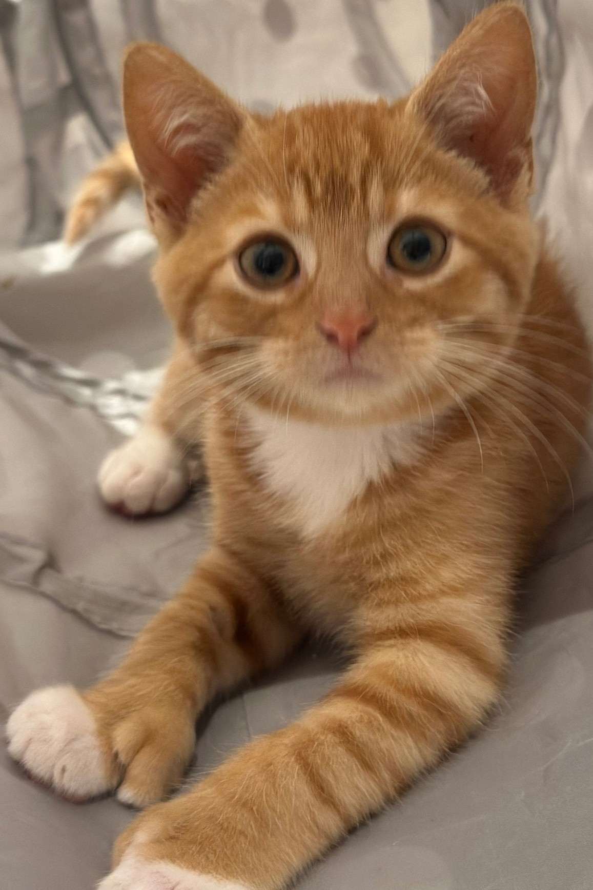 Alder, affectionately known as “Mittens,” is the thoughtful observer of his group, often sitting back to watch the wrestling match from the sidelines. However, don’t be fooled—he’s not afraid to initiate a playful tussle when the mood strikes! He has the best purr motor of the gang and absolutely loves a good cuddle or finding a soft, cozy place to snuggle up on the couch. This sweet boy also has excellent eating and litterbox habits.