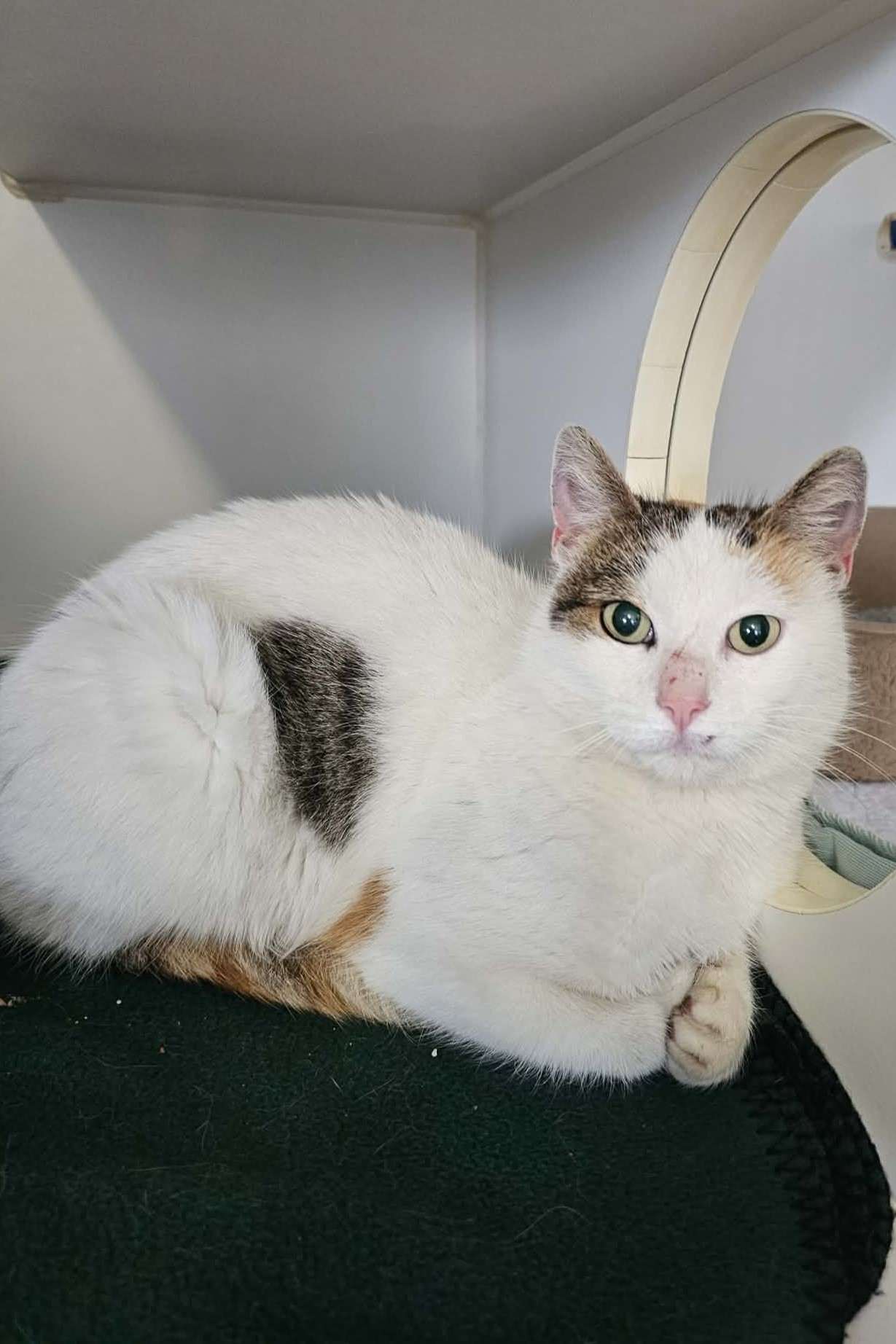 We suspect Baby Dill is blind or visually impaired, and due to this, she navigates the world a bit differently and can sometimes hiss or swat if she feels startled. She requires a gentle, patient approach to feel secure, but once she knows she is safe, her sweet and appreciative spirit truly shines through.