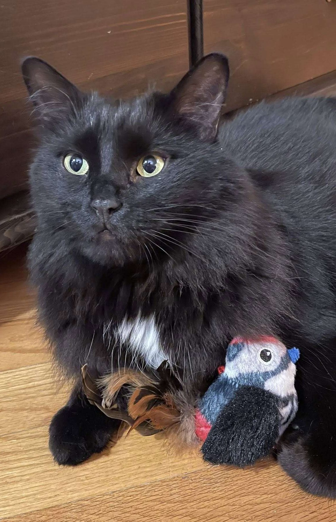 This bigger-than-life boy comes with a built-in alarm clock, making sure you do not miss his breakfast time. He loves his food and makes sure he doesn’t miss a meal! He also loves the wand toy and will chase it and you around the house every evening, to ensure that your both get your exercise!