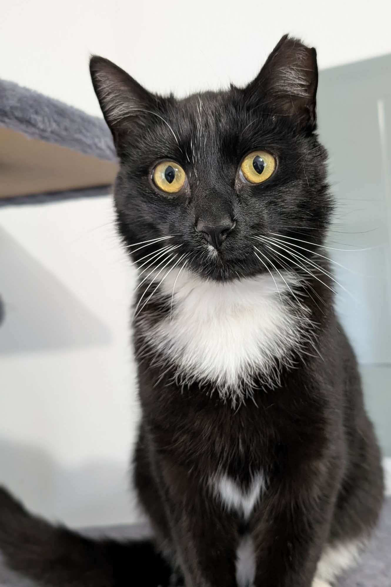 Chevy is a high-altitude enthusiast who loves finding the best vantage point in the room. You can usually find him perched on his favorite high spot or at the window, where he takes his “neighborhood watch” duties very seriously. He is also a professional biscuit-maker and loves putting his energy into a good scratch on his cat tree.