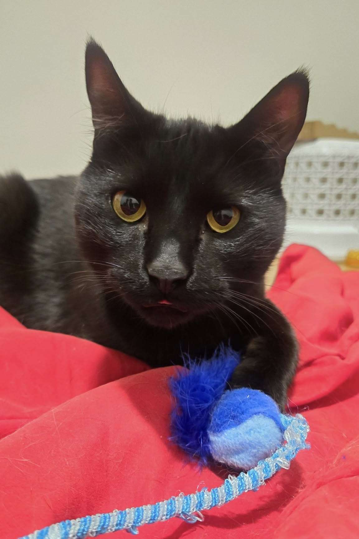 When he is not too busy playing, he will hang around his human rubbing against them for attention! This boy also loves and requires lots of pets!