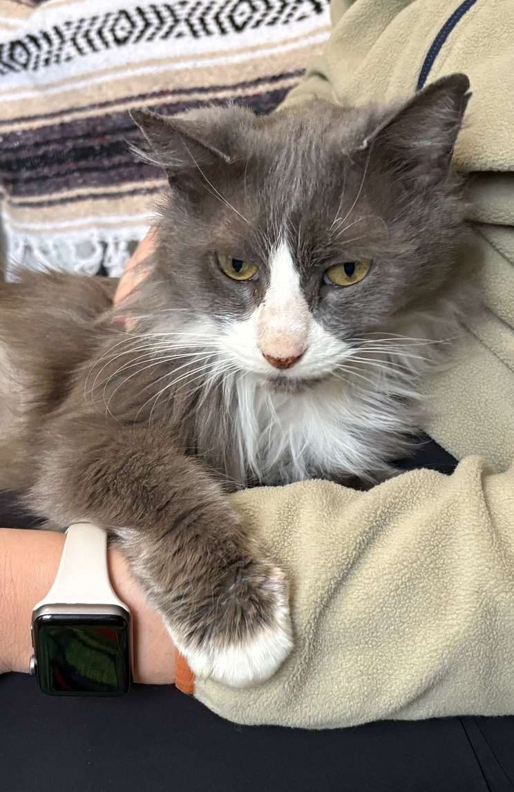 Eleanor is a stunning girl with an adorable face and long, soft grey and white fur. While she is beautiful, she does need a little extra TLC to help with fur loss on the bottom half of her body due to an allergic skin reaction. With proper grooming, high-quality food, and a stress-free environment, her coat is growing back in and will eventually match her beauty.