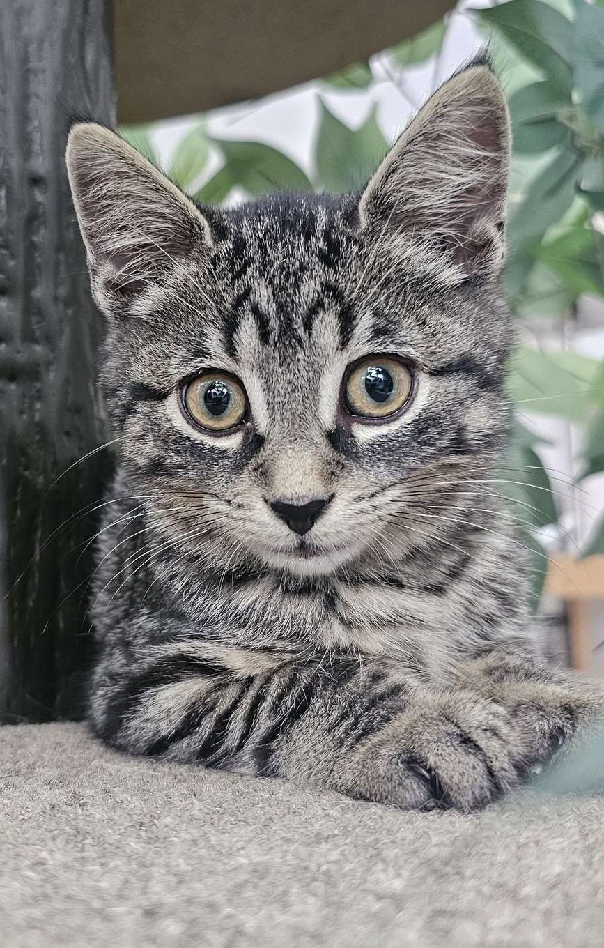 Moonpie is a handsome tabby boy with an infectious, playful energy! He may be a little shy at first, but it only takes a couple of minutes for him to open up completely. Once he’s comfortable, you’ll know he’s excited when his tail is straight up and he’s climbing all over you, purring loudly!