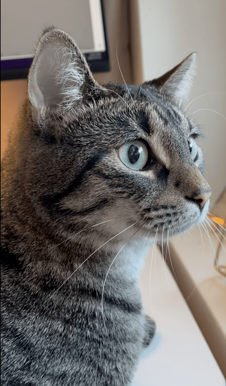 Morgan is already proving to be a loving, sweet, and curious girl. She and her friend Arthur are absolute snuggle bugs, with Morgan being the more dedicated cuddler of the two! They had fun exploring the apartment and trying out different toys. They’ve claimed the bench in front of the big living room window as a favorite nap spot and will sit there watching squirrels and the snowfall like tiny retirees with nothing but time.