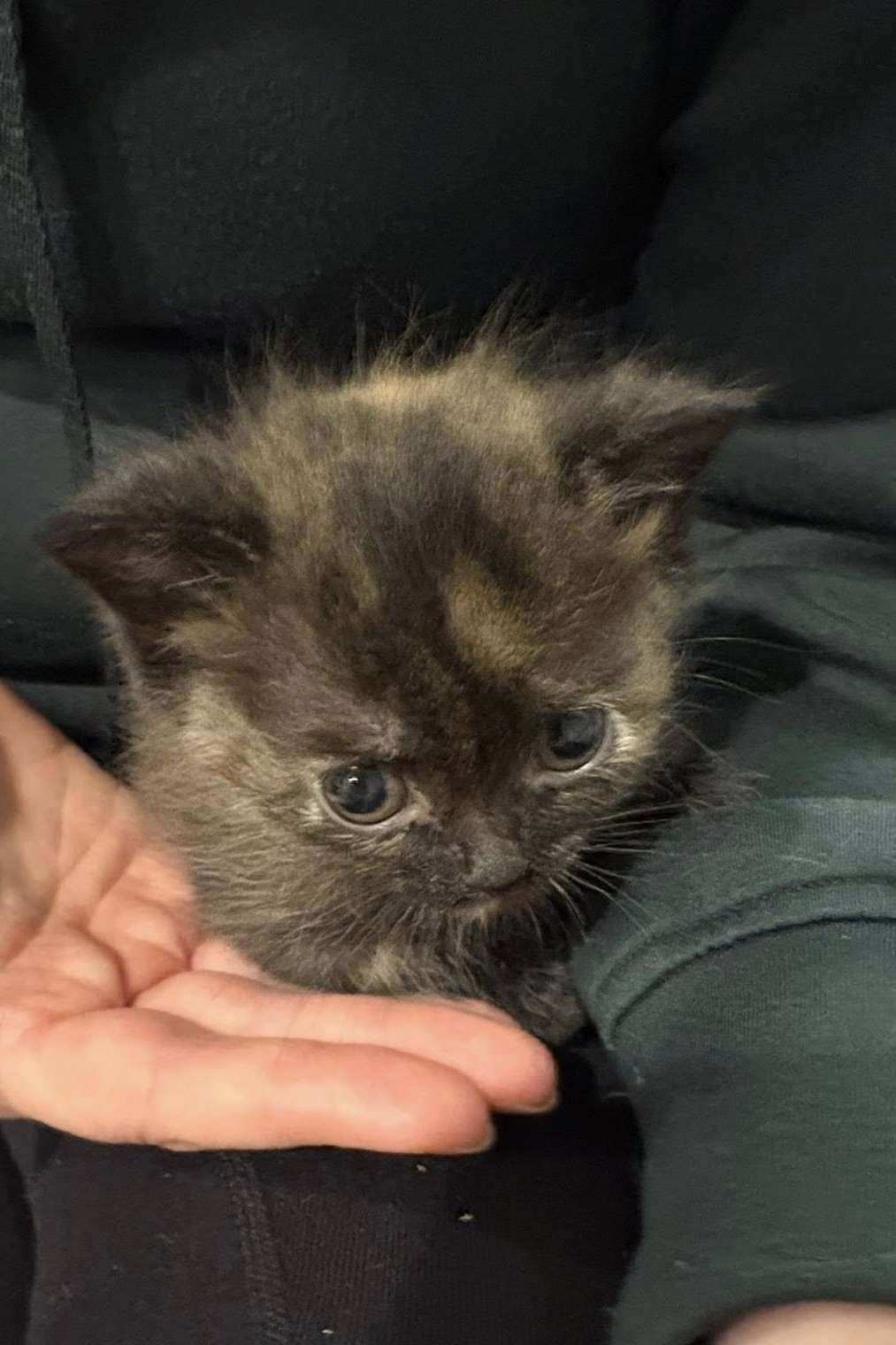 Sweet Sunny may be the smallest of her siblings but she has the biggest heart in the litter! While she was a little slower than her siblings she has officially mastered the art of eating wet food and is truly starting to thrive. She is a total Velcro cat who prioritizes love over everything else. In fact, she refuses to even touch her dinner until she has been picked up for her mandatory pre-meal cuddles!