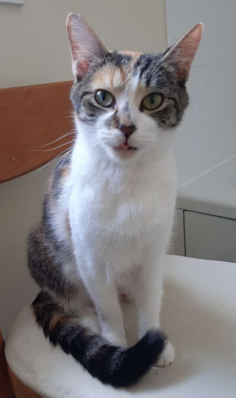 This five-year-old boy is a complete sweetheart. He is super affectionate, not shy at all, and literally came out for pets the moment he arrived in care. He loves to roll onto his back for a good belly rub and purrs a soft, contented purr. Calypso is the perfect snuggle buddy and thrives on being around people.