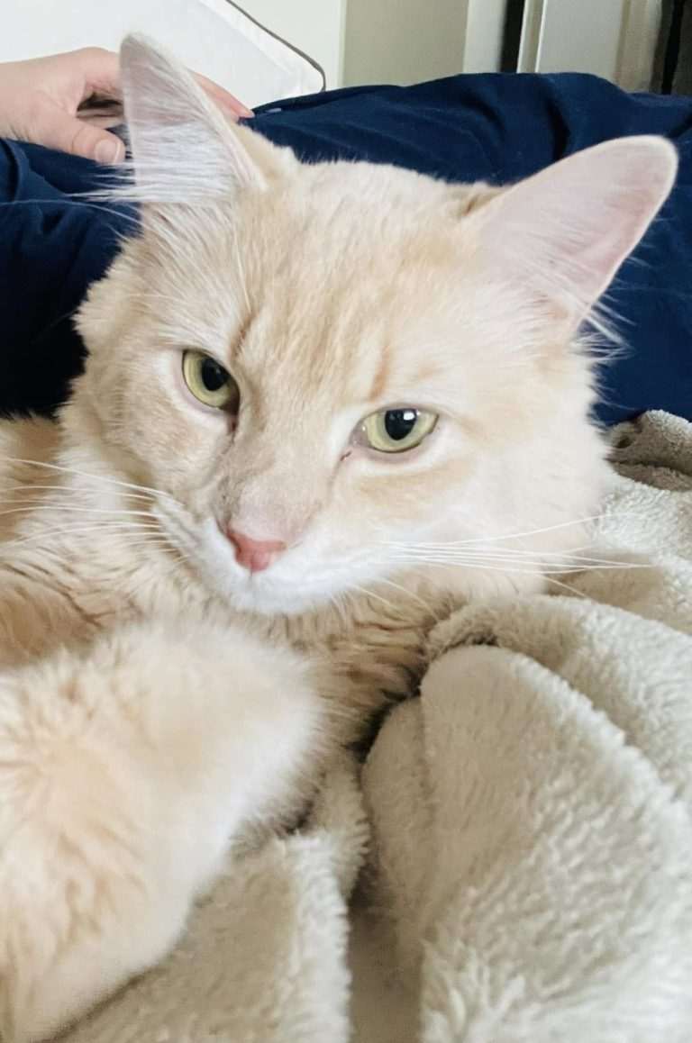 While she is missing the comforts of the home she once knew, we’ll give this soft-hued beauty some time to settle into care before searching for a new forever family for her.