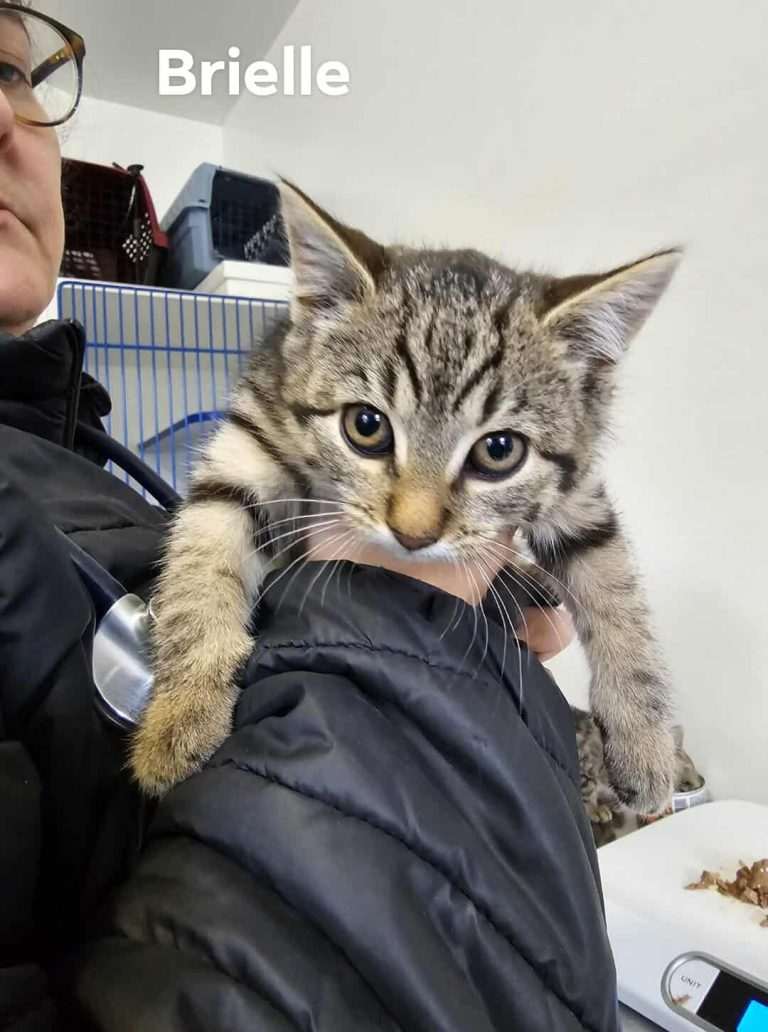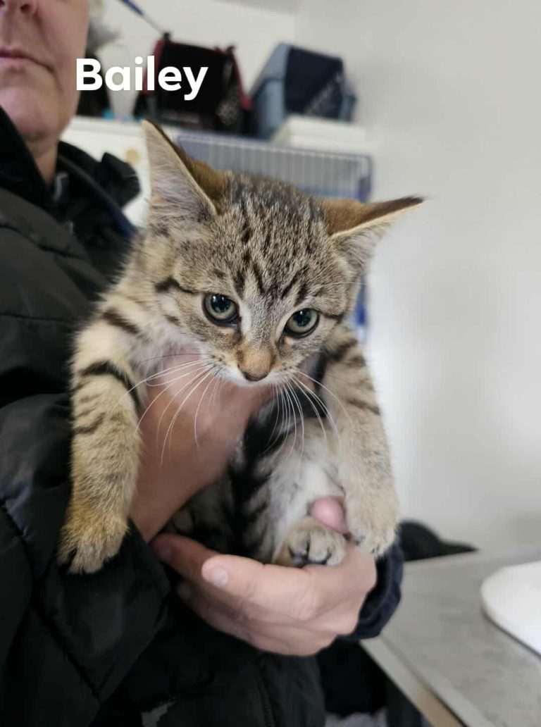 Like all kittens, he loves to run, jump, and climb, spending lots of time exploring the cat tree and the tunnel. He’s very curious and is always the first one to check out new toys! He is often found playing and sleeping right beside his brother and sister. Bermuda loves Temptations treats and has perfect litter habits, making him a wonderful and loving addition to any home.