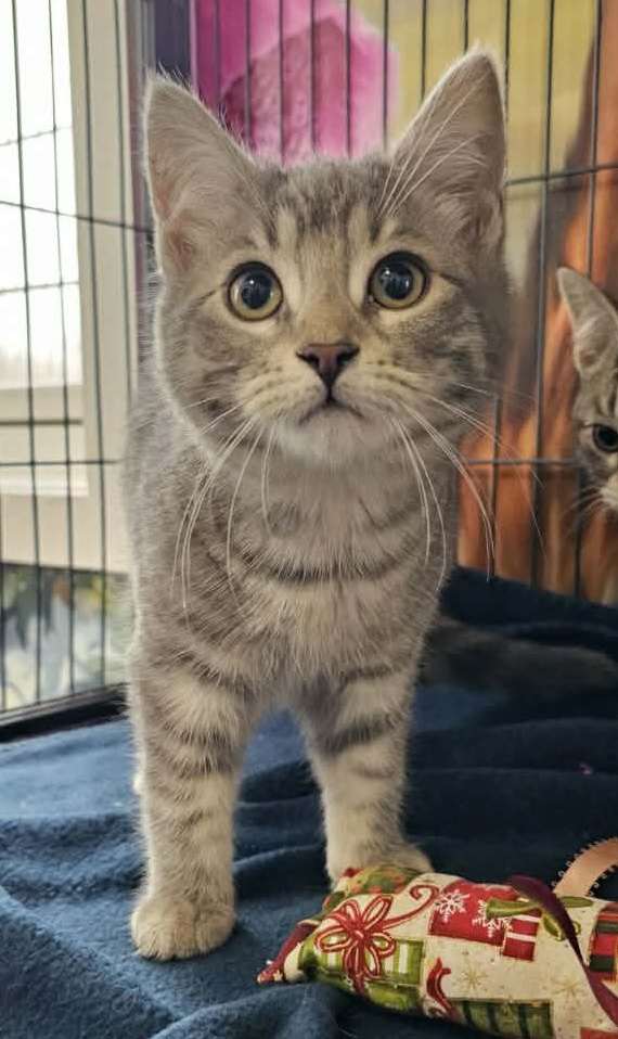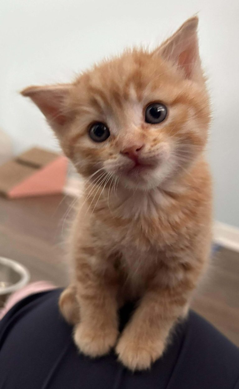 Clementine is a playful, curious little guy who was the first of his group to use the litter box. He is so full of energy and loves to climb onto his foster! He is often one of the first to wander over when someone enters the room. With his beautiful fur pattern and charming personality, Clementine is a truly handsome little fellow.