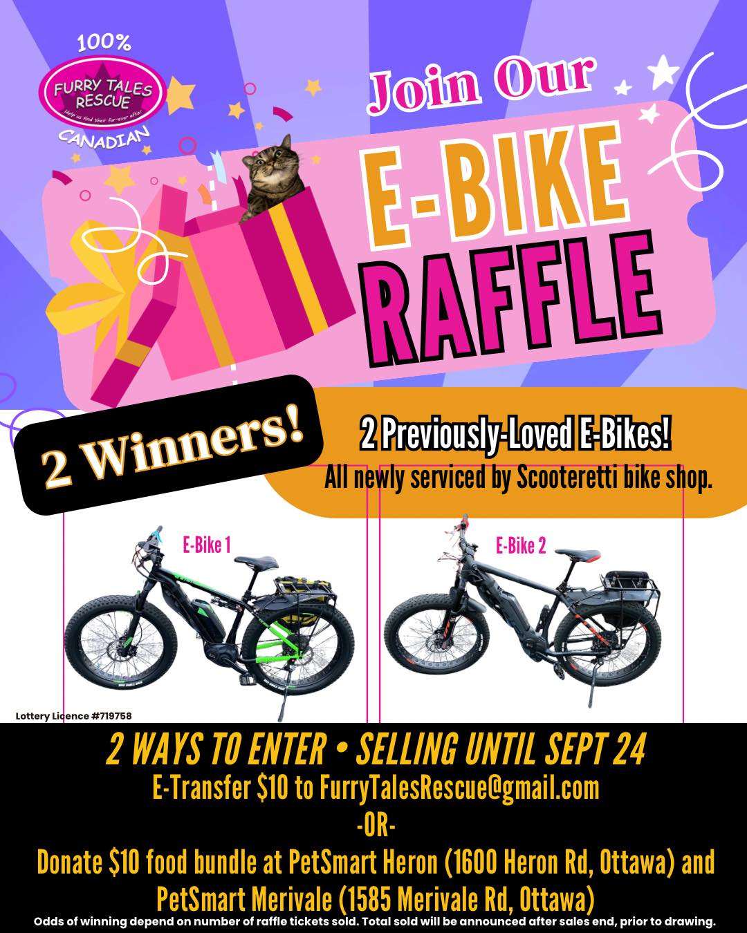 - Send an e-transfer for $10/per ticket to [email protected] with “Bike Raffle” in the notes.