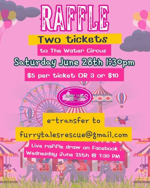 Send an e-transfer to [email protected] with the note ‘circus raffle’. We are only selling 150 tickets and the draw will be tomorrow, Wednesday June 25th at 7:30 PM. So don’t delay in buying your tickets!