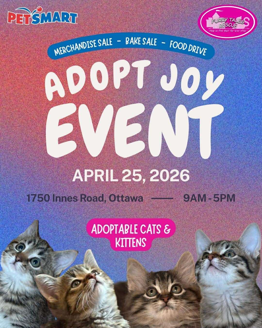 🐾 ADOPTION EVENT: Adopt Joy at PetSmart Innes 🐾 Are you looking for a new best friend? Join Furry Tales Cat Rescue for a special adoption event! We’ll have several incredible cats on-site, all dreaming of finding their forever homes. Whether you are ready to adopt or just want to support our mission, there are...
