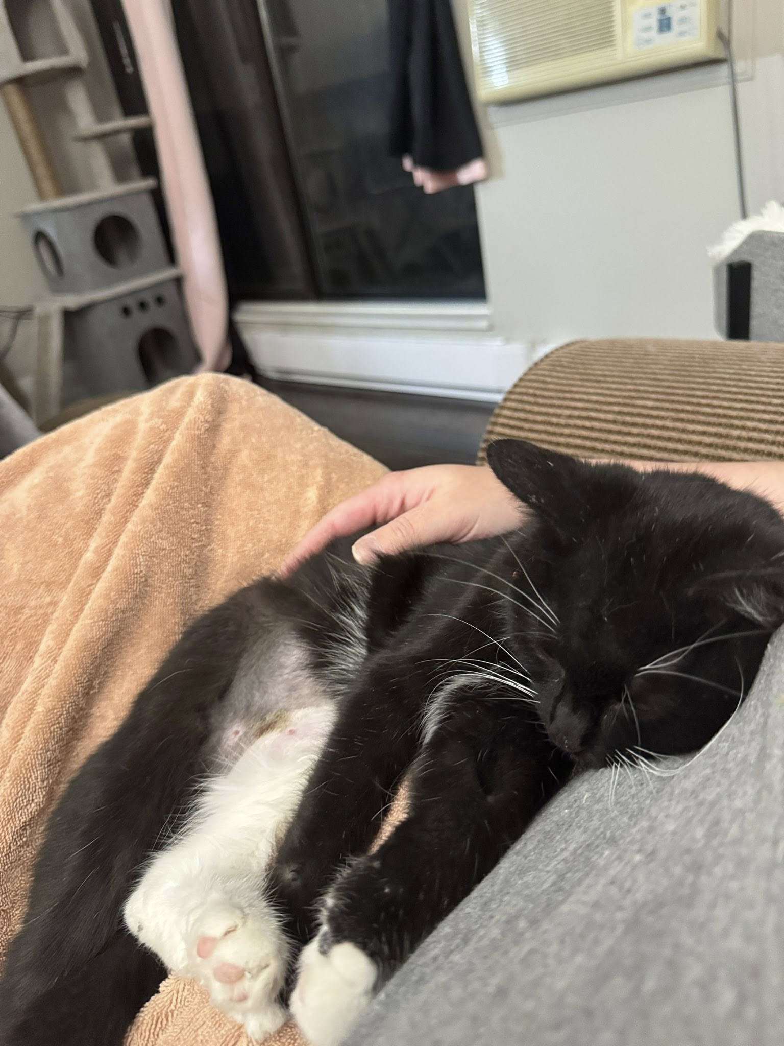 She was quite shy, but during her time with me, I got to experience small glimpses of her personality. Arabella loved to spend the day looking out of the window, watching life on the outside from the comfort of indoors. She loved being pet, curling up in my lap, and finding cozy new spots to rest in. Although she didnât eat much here, she could not resist a Churu tube, and tried almost all of the different flavours !