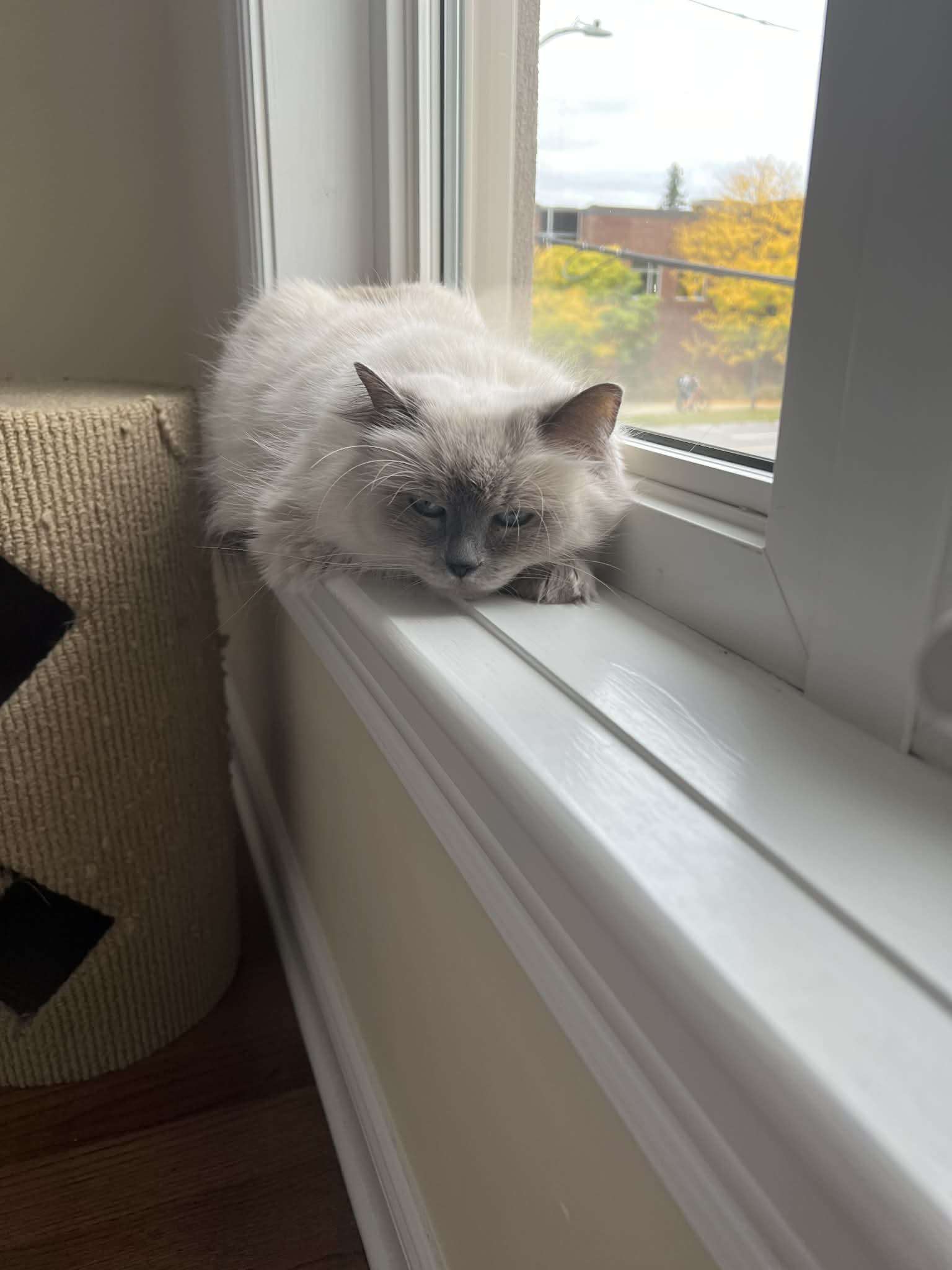 She was quite shy, but during her time with me, I got to experience small glimpses of her personality. Arabella loved to spend the day looking out of the window, watching life on the outside from the comfort of indoors. She loved being pet, curling up in my lap, and finding cozy new spots to rest in. Although she didn’t eat much here, she could not resist a Churu tube, and tried almost all of the different flavours !