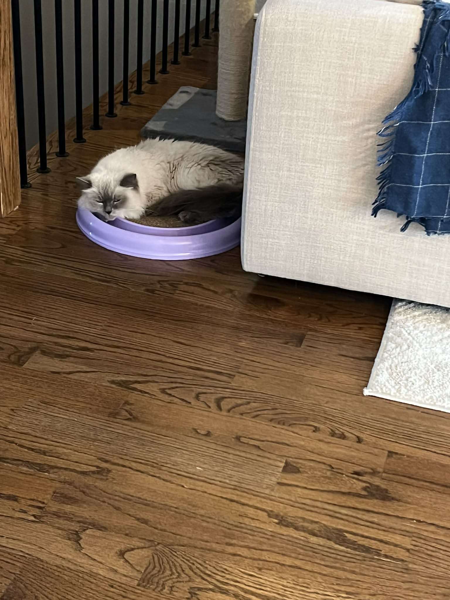 She spent the day in the special oxygen tank and was later able to come home with pain medication to keep her comfortable while she rested and healed. Upon returning home, Swiffer seemed like her usual active, outgoing, and loving self; coming out immediately and climbing into my lap for purrs, pets, and treats 🩷. Later that evening, her irregular breathing returned worse than before, and she had an accident all over herself, so we went back to Alta Vista immediately. Although she was admitted to critical care overnight, her prognosis seemed good; she was stable, and the veterinary team advised that flare-ups could occur, which was a relief given the circumstances.