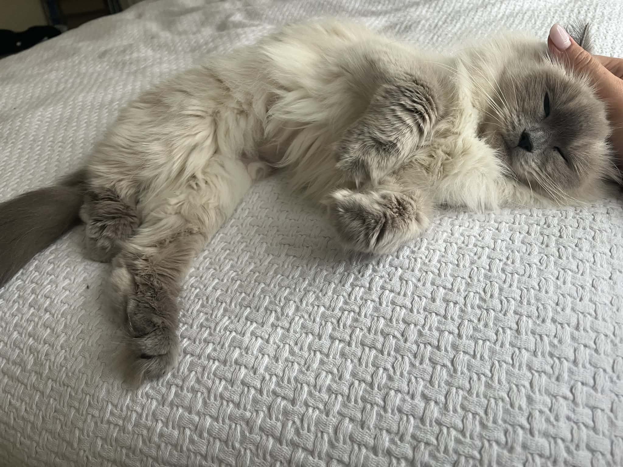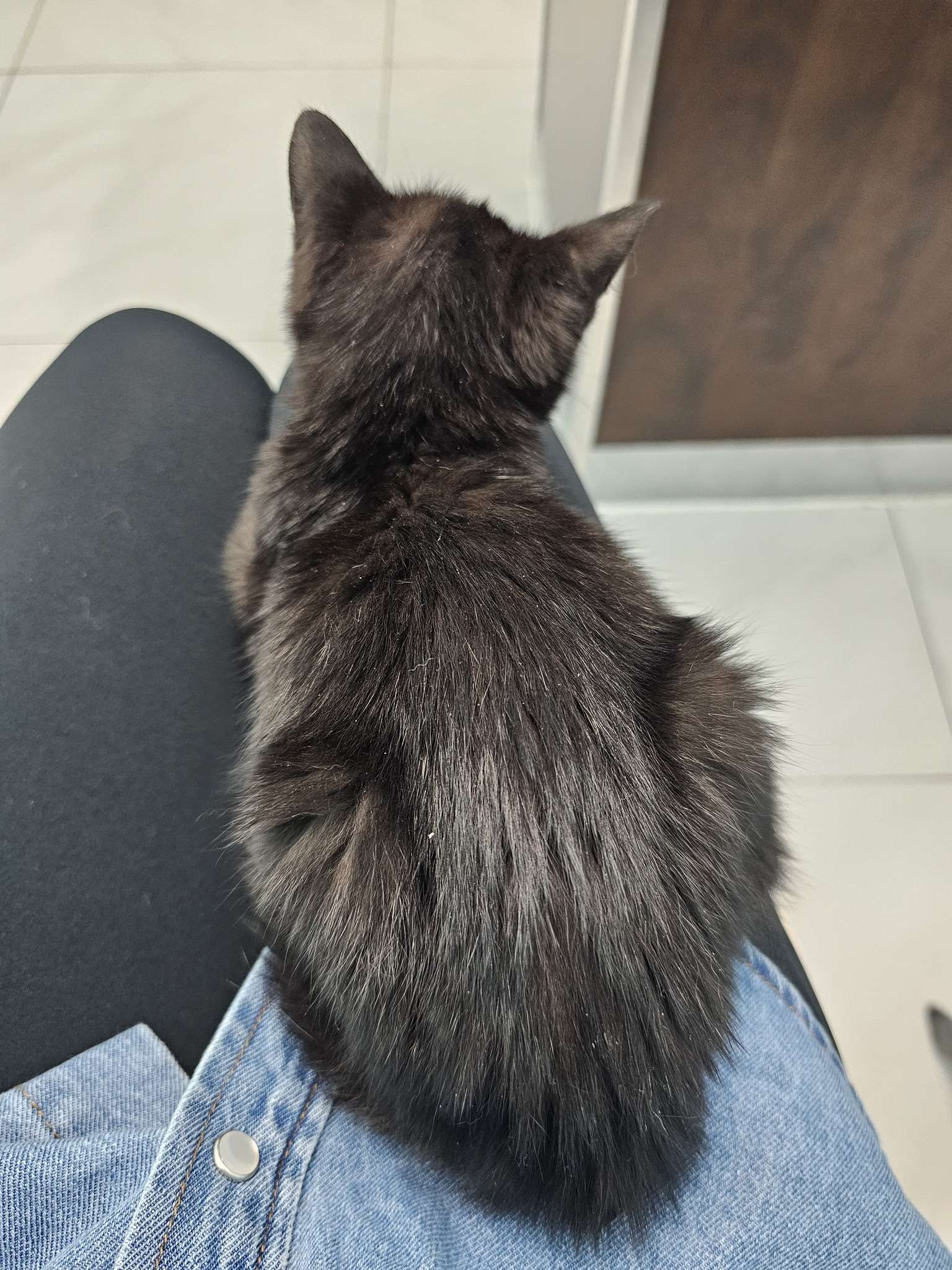 “Sweet Twinkie passed away overnight. She was the chillest, gentlest, calmest little cat. At first, she was shy and preferred to stay in her carrier. But once she settled in, she showed us how much she loved being near people. Twinkie would sit and stare at us with her blank little face, purring softly when we pet her. She didn’t mind being held or kissed on the head, and she’d happily curl up on our shoulder or lap. She loved attention, made biscuits when she was content, and waited by the door to greet us.She wasn’t too interested in play and preferred to observe, probably because she wasn’t feeling well. But she loved Churu and took her time eating, one tiny bite at a time.