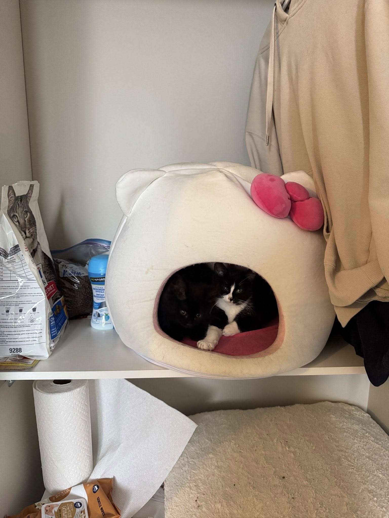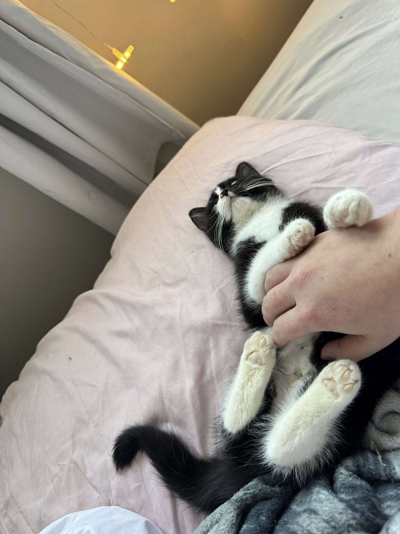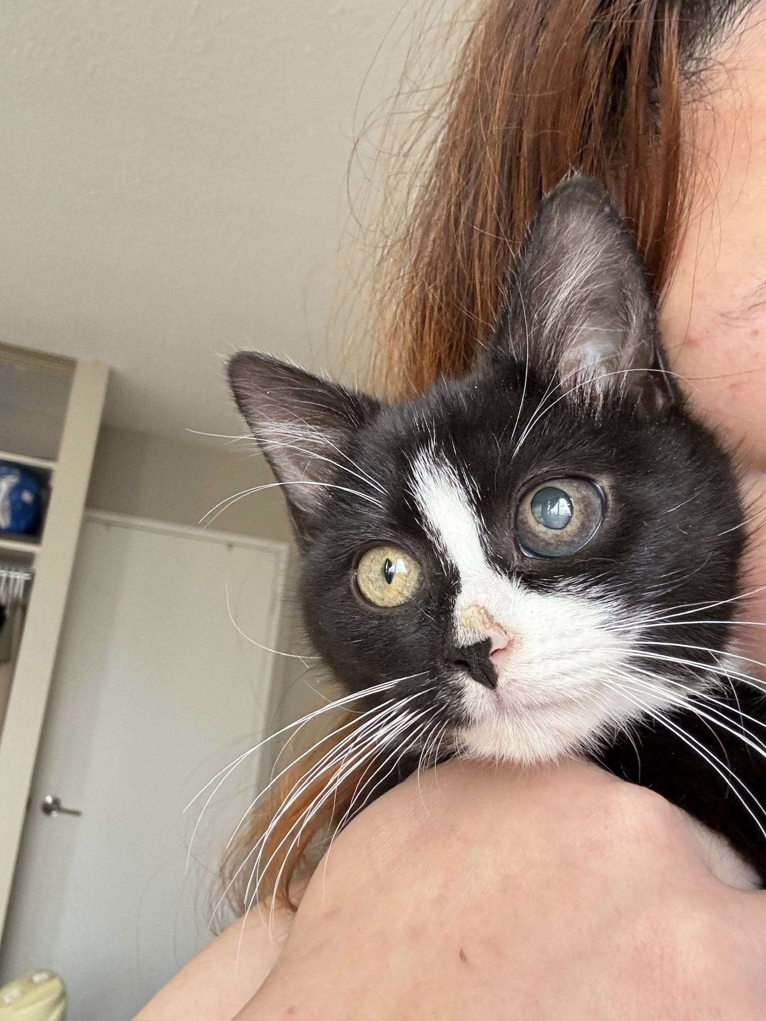 While Swiffer was with me for only ~3 weeks, she made such a profound impact. Her first couple of days, she was hissy, growly, and scared, but she quickly revealed her incredibly gentle, loving, playful, and comforting personality, and brought so much happiness to Lint and I. She was the perfect kitten who lit up the room simply by occupying it; she would always come and sleep directly under my chin, purred the moment I looked at her, and showed Lint how to be brave and courageous. She loved to exchange grooming with resident cat Beans, curl up in my lap during Zoom lectures and work calls, and was so full of life. Despite being a foster kitten, it felt like she was “home” and I love her just as I do my own cats.”