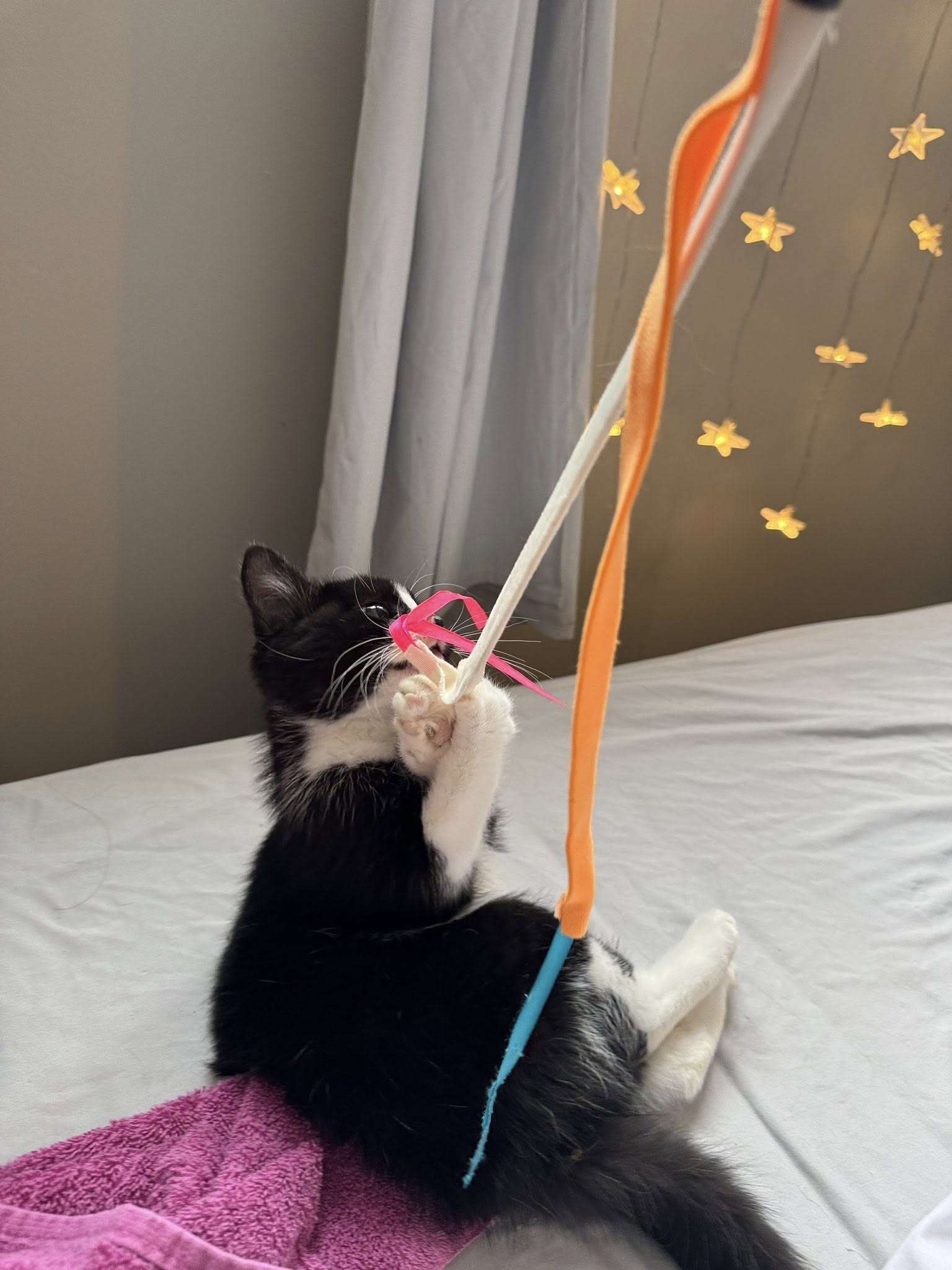 Mars was a curious and shy little kitten. He LOVED to play but preferred to do so with his foster brother scoop. They would spend hours wrestling and chasing each other, sharing tube treats, and antagonizing mama. His favourite toy was a ball tower that he liked to watch go around and around.